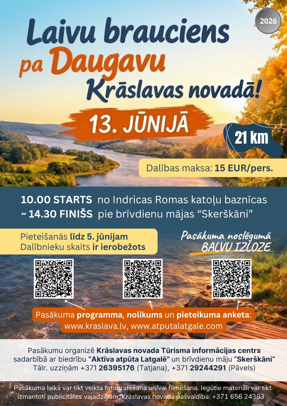Kontaktinformācija: +371 26395176 (Tatjana), tic@kraslava.lv,